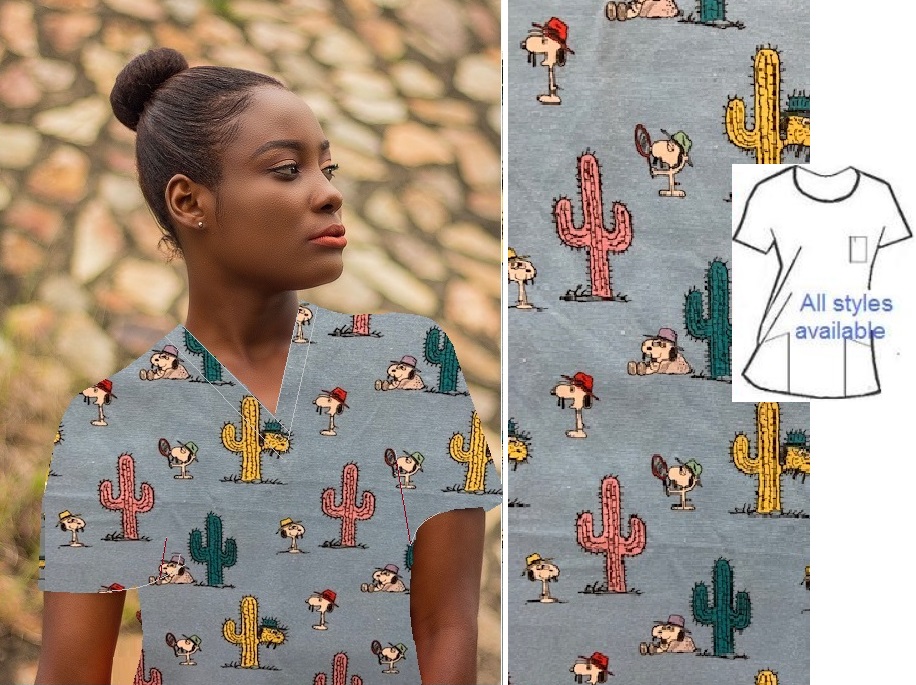 Cartoon Scrubs — pick your cartoon medical scrubs fabric and we’ll custom-make your new scrubs in 100% comfy cotton.